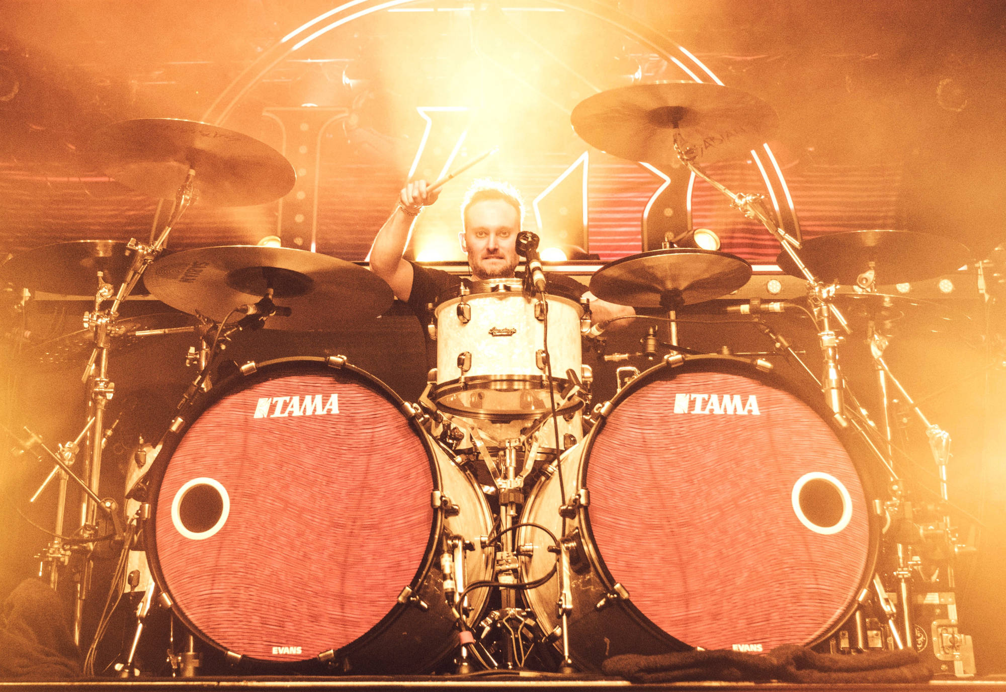 aber meistens sind sie der Mittelpunkt einer Bühne, ein Eye-Catcher...Bass Drum Front Felle.
